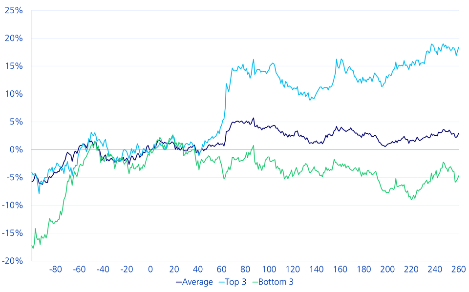 2. The dispersion is high. The three «most successful» cycles show an average performance of almost 20% after the first year. The performance of the three «weakest» cycles was -5%.